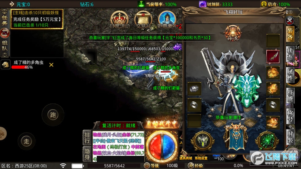 3、装备全靠打,散人也可以通关,按照自己的喜好去刷游戏任务、活动、主线等等。