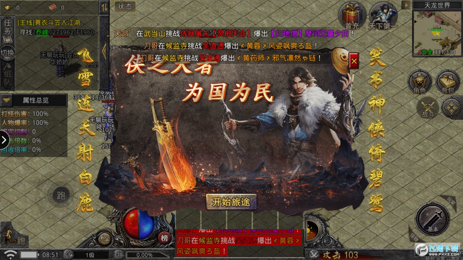 通往传奇之巅的道路在这里等着你,轻松获得各种强力装备,爆率全开秒杀全场怪物。