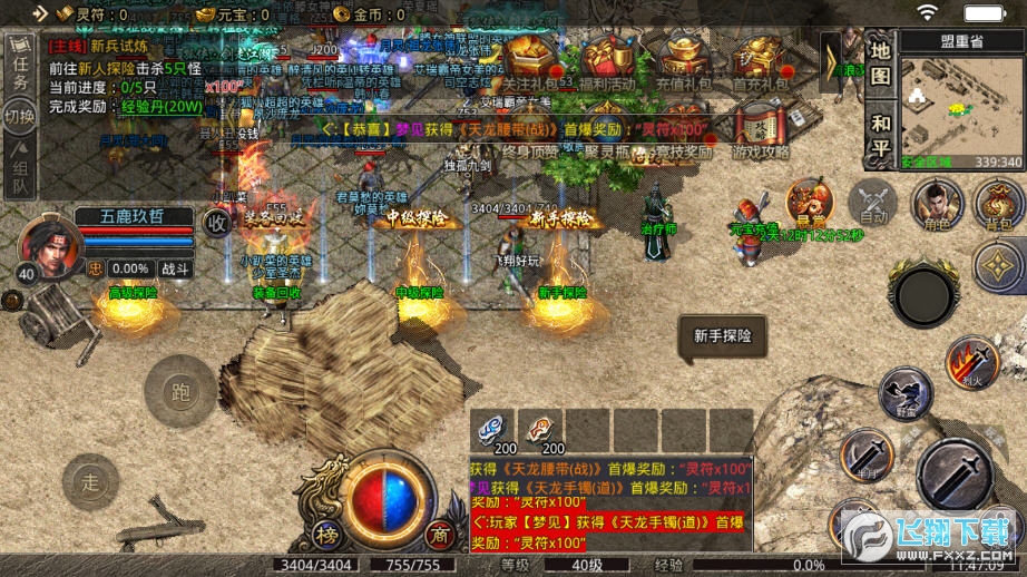 3、新手登陆可以免费领取超多经验和道具以及稀有装备,升级更快速。