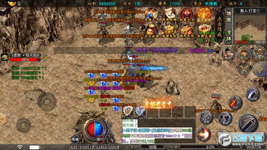 4、超刺激的玩法,爆率全开,boss爆一切,小怪全靠玩家自己打,模式随玩家选择。
