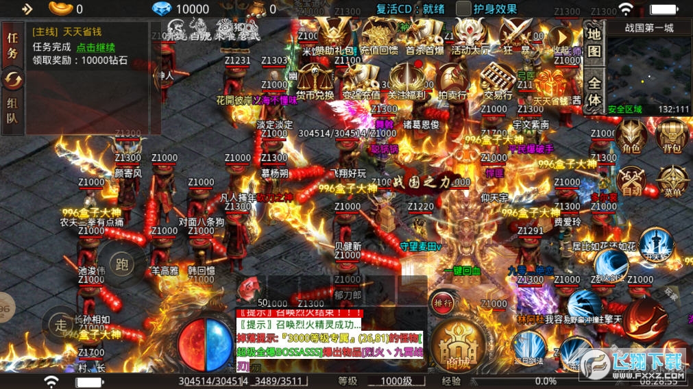 玩家参与沙城、地图PVP玩法,沙城瓜分灵符,地图争夺核心BOSS。