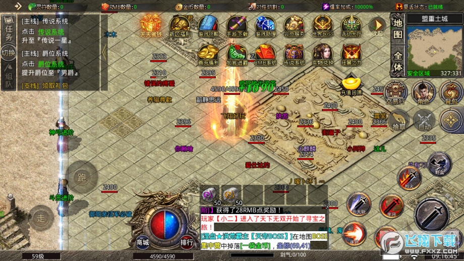 3、高自由度的战场设定,简单粗暴的人物操作,带你实现原始的传奇玩法。