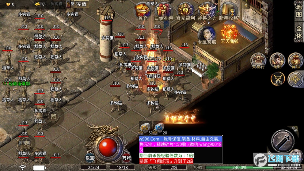 2、千人同屏,爆点升级,一招秒全屏,激烈的战斗让你震撼全场。