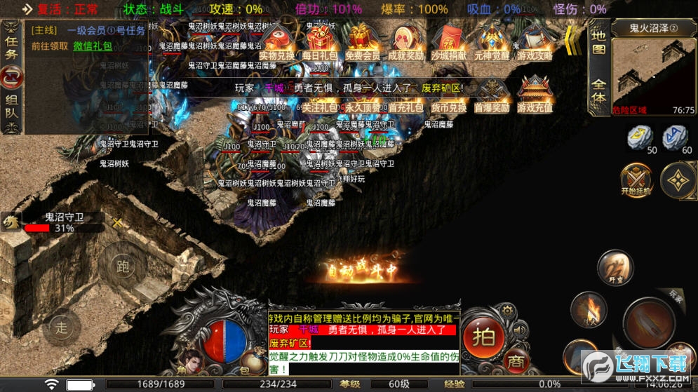 1、精致细腻的画面,炫酷华丽的特效,决定流畅,完美体验传奇乐趣。