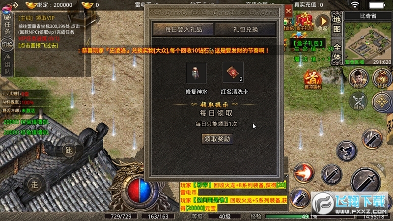 3、经典的传奇游戏,玩家上线就送满级VIP,各种游戏副本,玩家可以尽情的进行挑战。