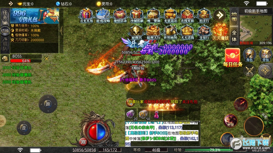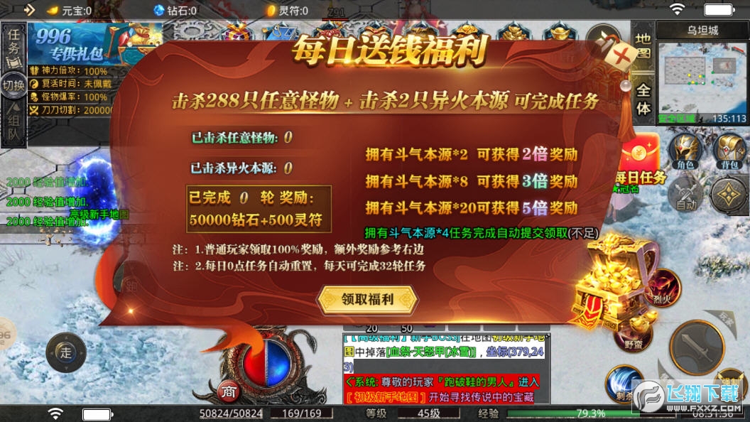 2、所有装备无需绑定,千人同屏,各显神通,打怪刷金,赞助换灵符,无需氪金也有好体验,一刀砍怪习以为常。