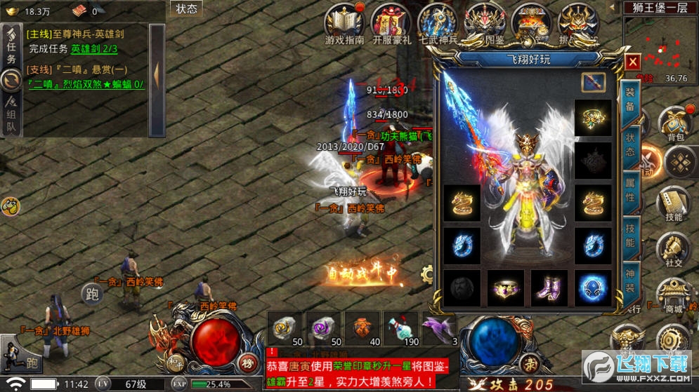 1、一键,自动刷怪升级,副本爆率高,神装随便捡,让你快速提升战斗力。