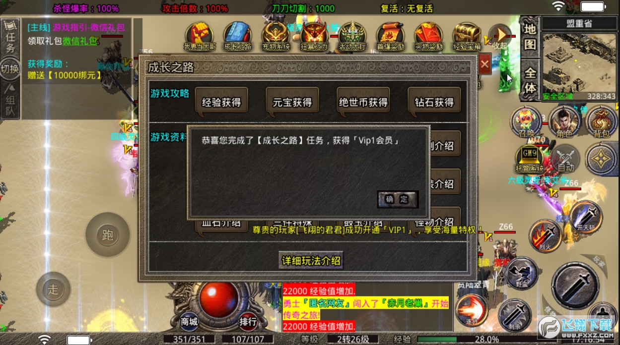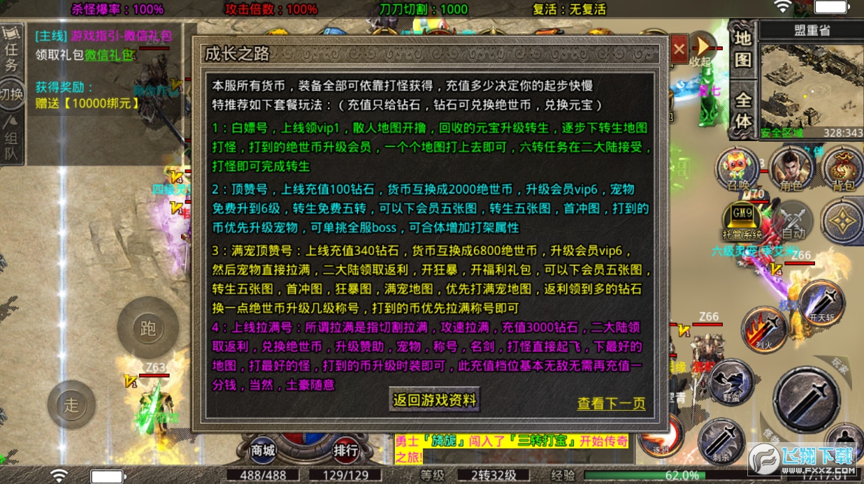 3:玩家等待区可参加海量活动获得大量元宝,绝世币,实物,升级超强宠物即可单挑全服boss
