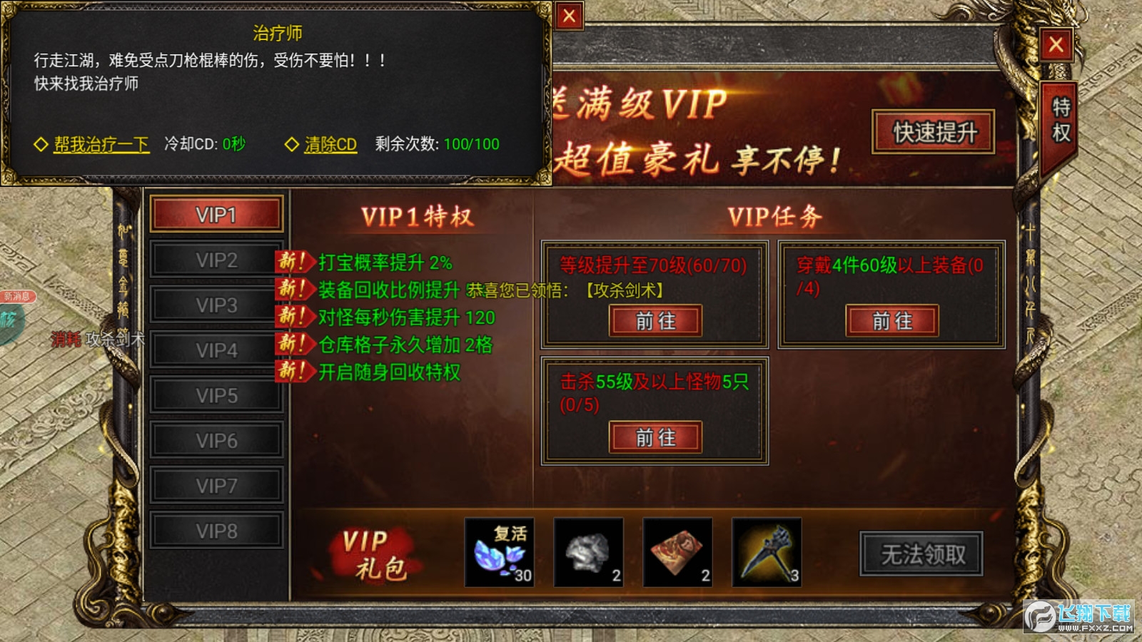 智能挂机系统,玩家进入挂机区域即可挂机打怪,智能拾取高级装备,退出游戏也不会错过超高的游戏收益哦。