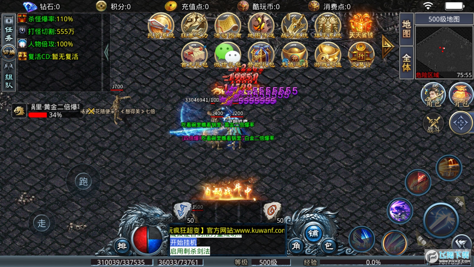 2、搭配热血PK抢夺、经典万人城战、酷炫技能招式等丰富玩法,霸气装备自动收入囊中的至尊快感。