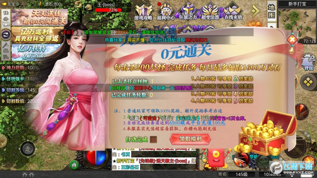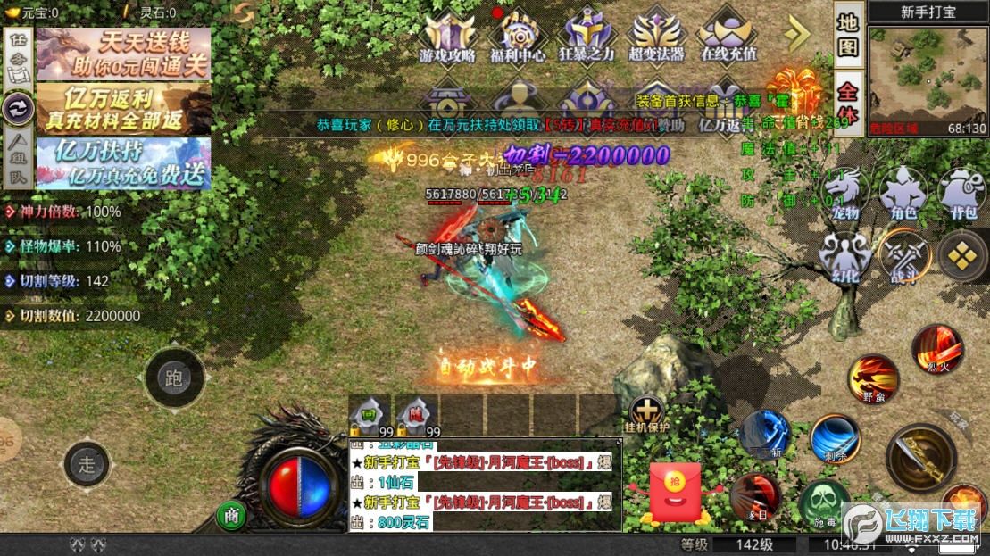 自动回收,全屏捡物,赞助礼包,真实充值统统直接送。