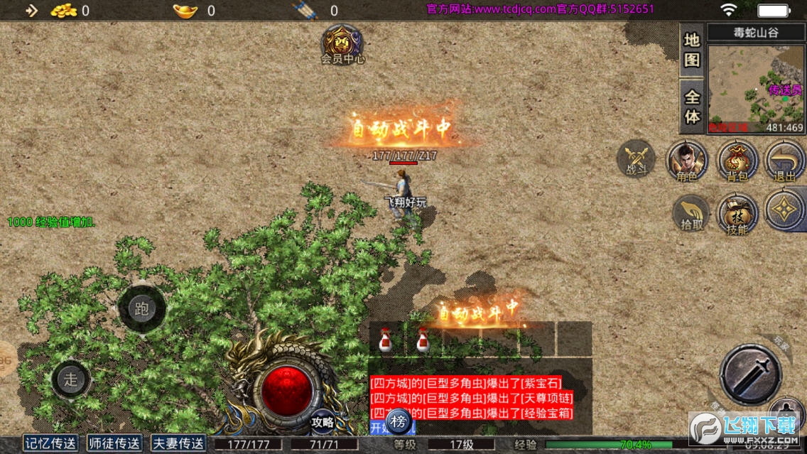 1、游戏主要以升级、打宝、PK为主要核心,所有道具全部靠怪物爆出。
