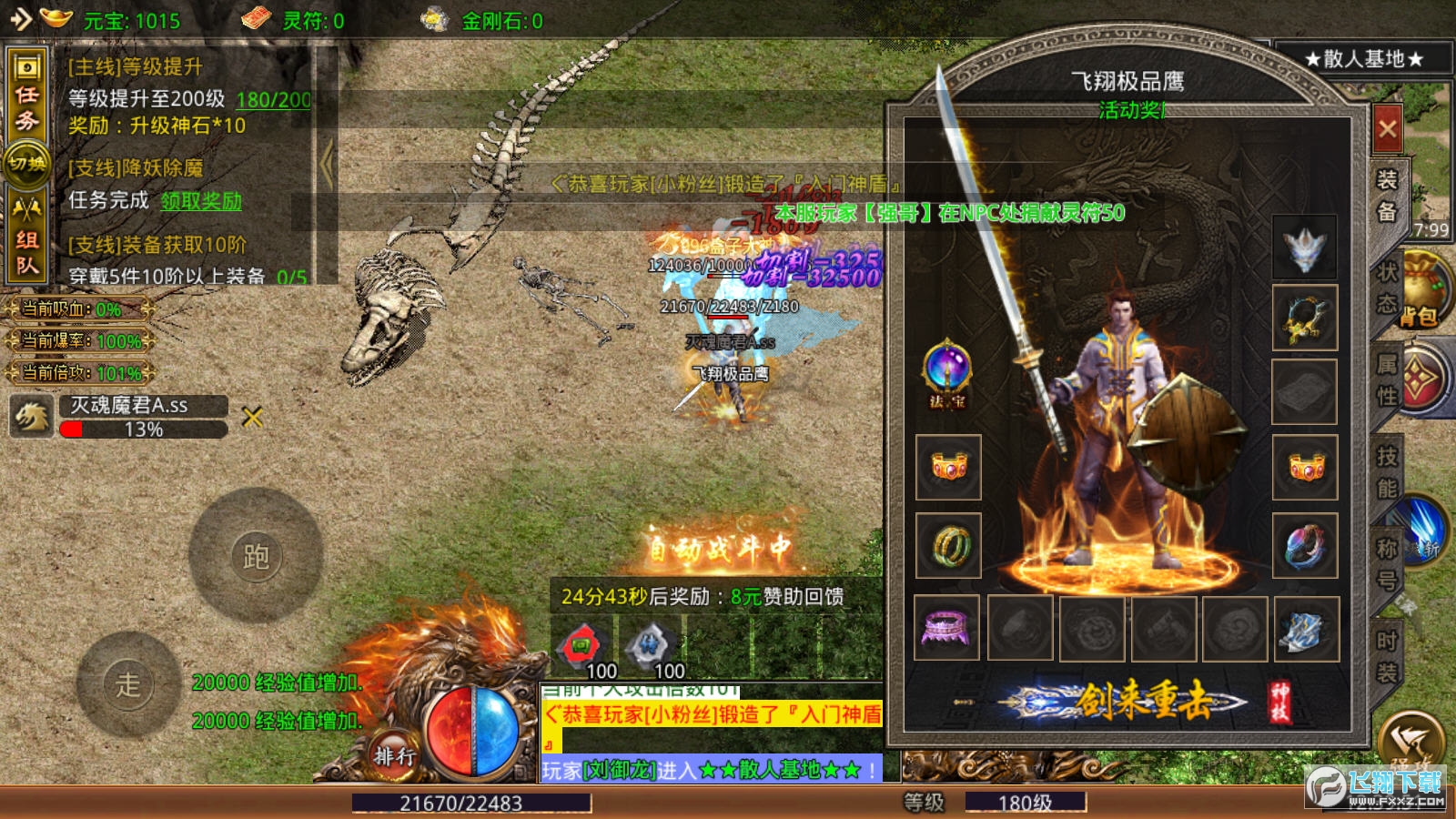 2、无需复杂操作,可以尽情的体验轻松打怪升级,装备买秒回收,超强新技能等你自由体验!