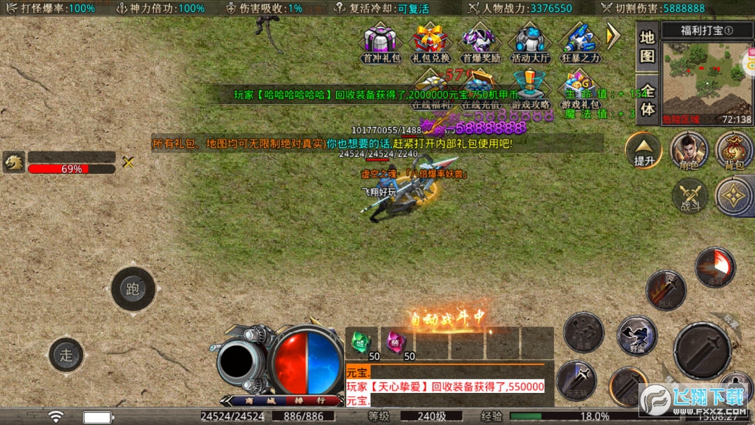 2、副本奖励翻10倍,真实战斗打击风格,涵盖超凡的装备自由回收体验。