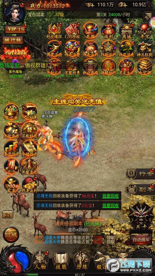 2、自由的PK竞技玩法,刷野升级还能获得顶级装备。