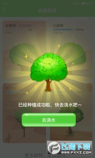 1、树苗商城:选择不同的树苗浇水种树可获得相对于的梦幻值做公益活动。
