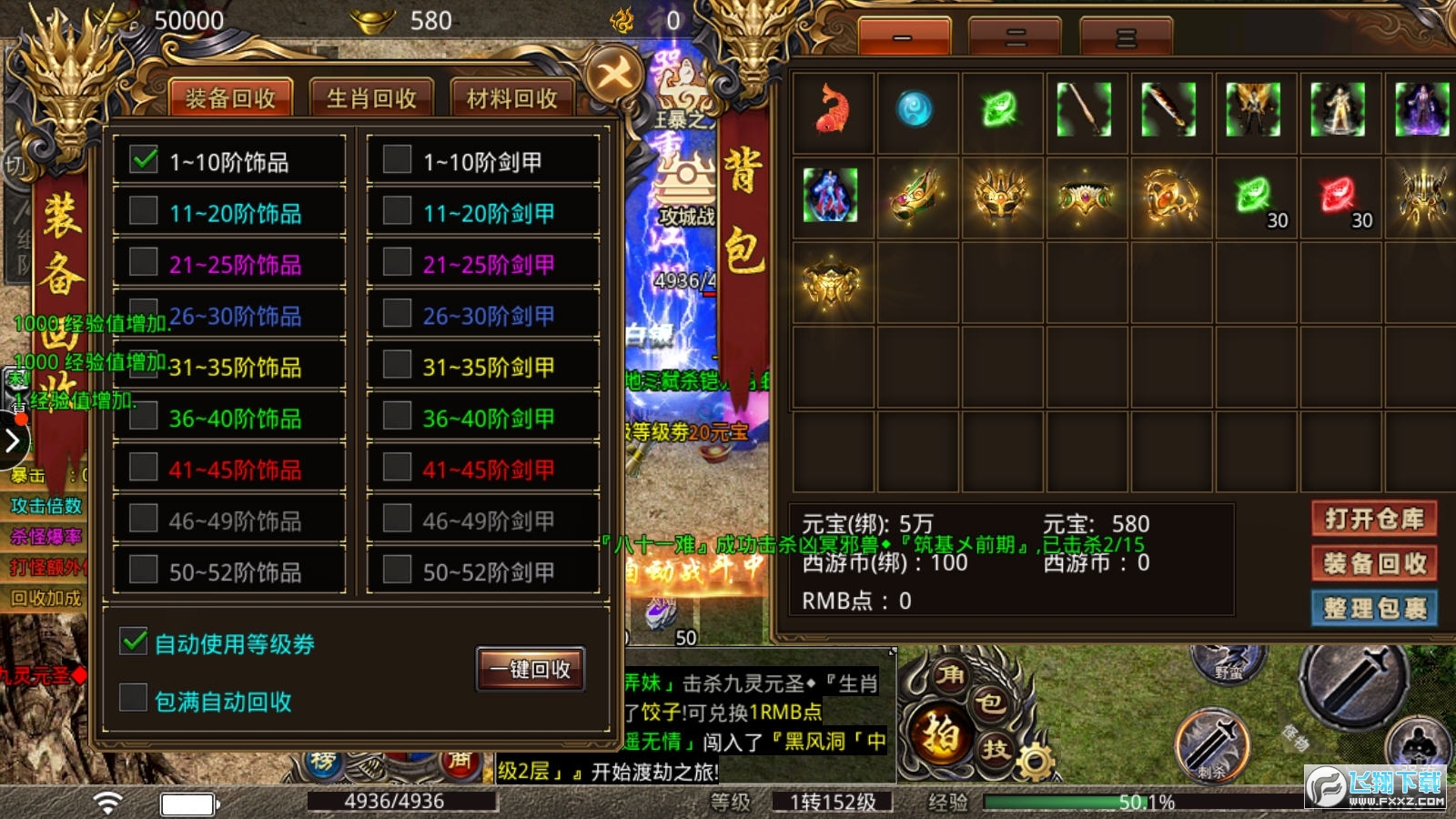玩家回收各种装备,可获得一些元宝或绑定元宝奖励。
