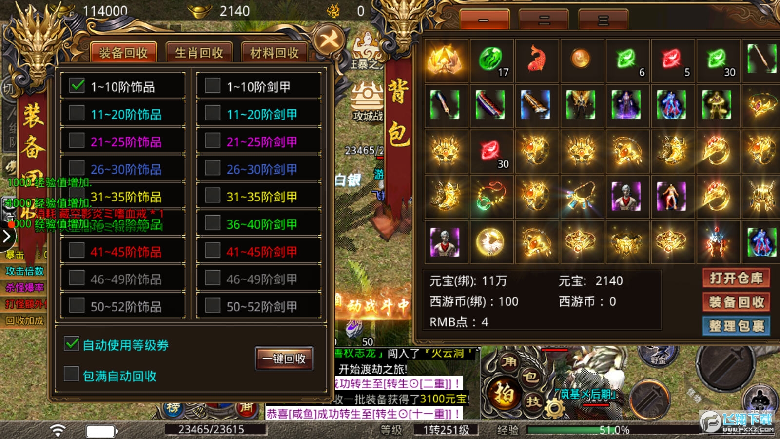 玩家回收各种装备,可获得一些元宝或绑定元宝奖励。