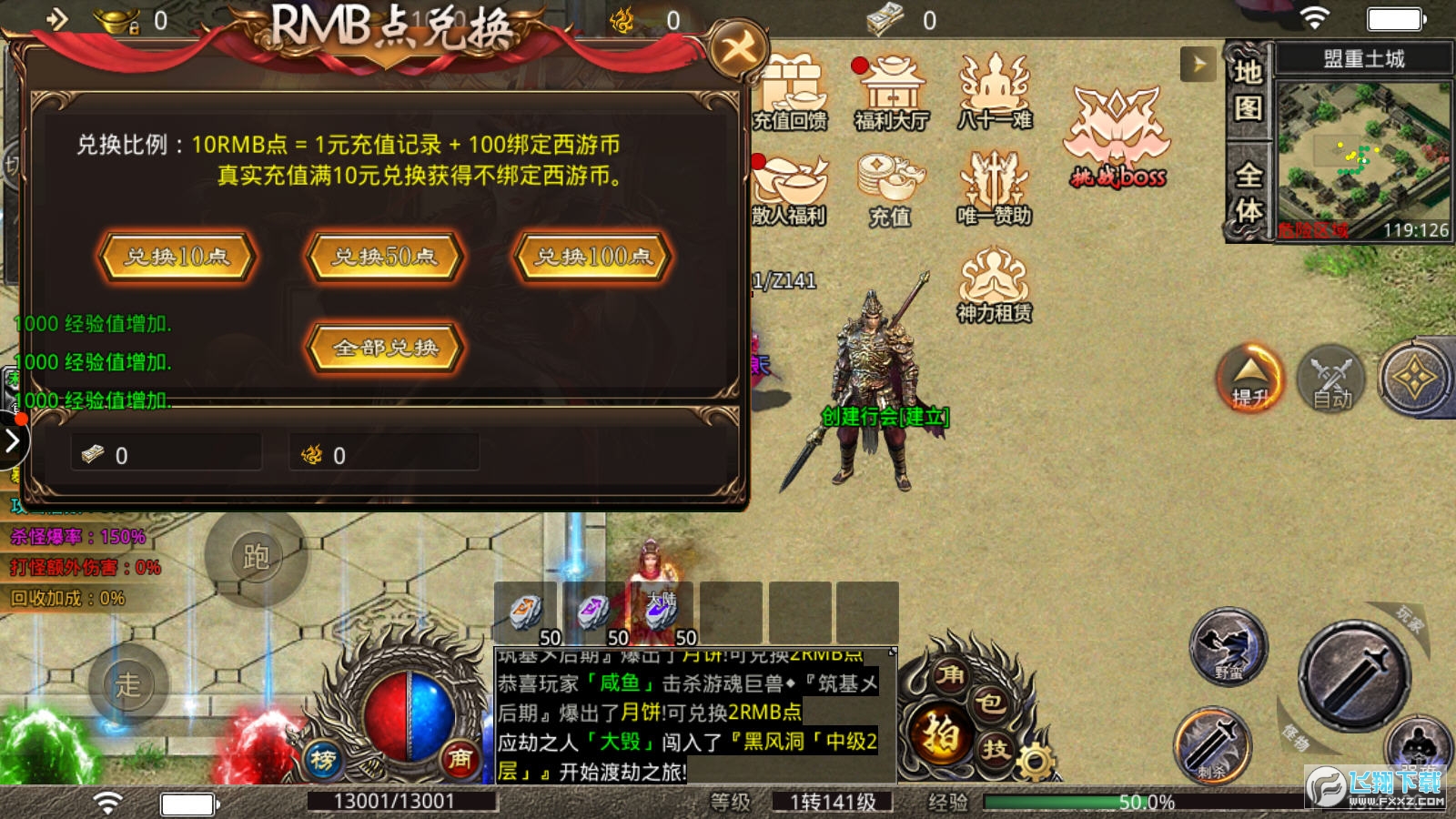 6、增加了行会号角道具,使用后给所有行会成员增加1小时临时属性,时长没有叠加上限