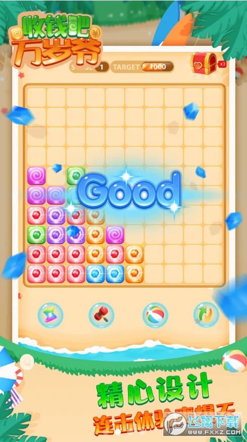 收钱吧万岁爷是一个让你获得消除红包奖励方块技能的游戏。收钱吧万岁爷的消元就是这么简单易行。相信很作为淘汰大师都能做到。收钱吧万岁爷感受淘汰的乐趣也是一样的。你也可以获得很多机会获得红包的奖励和制裁。