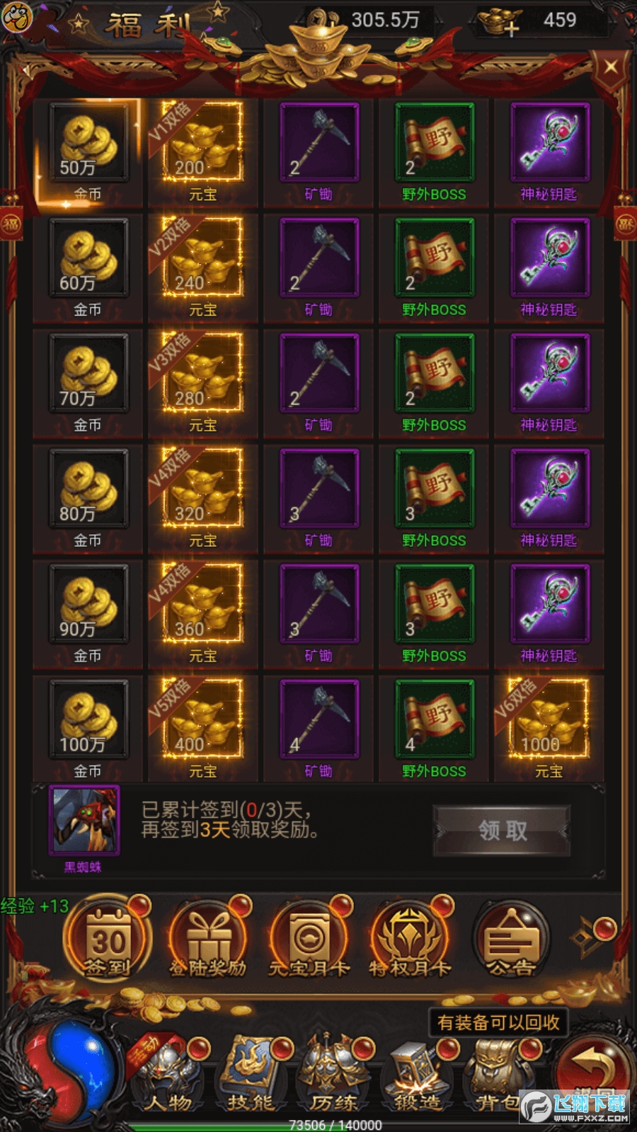 13、每日的降妖伏魔和材料副本以及boss副本都必须要做boss副本爆六转的装备。