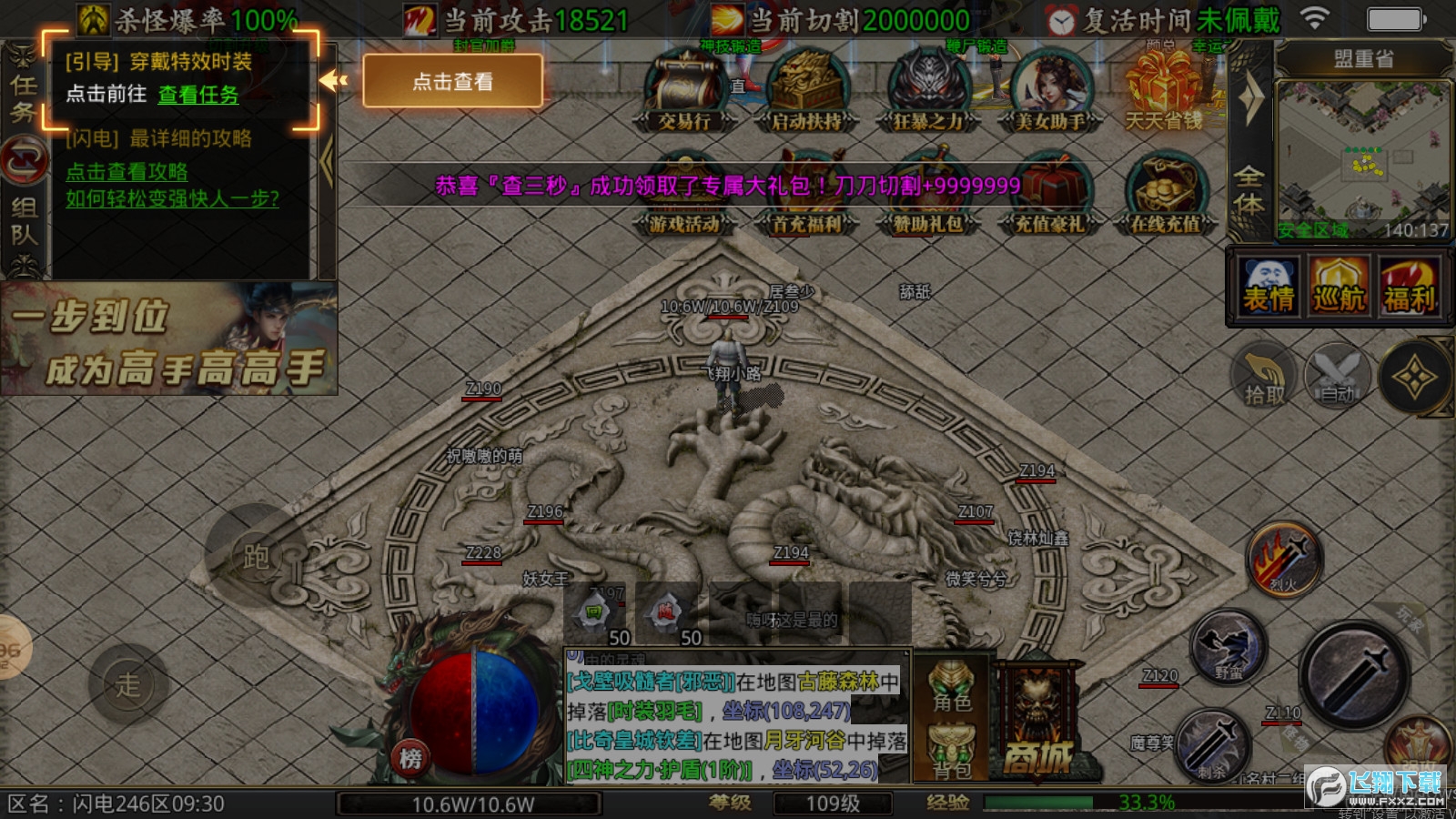 上线就送满V等特权,更有赤月套装、火龙套装等你领取;
