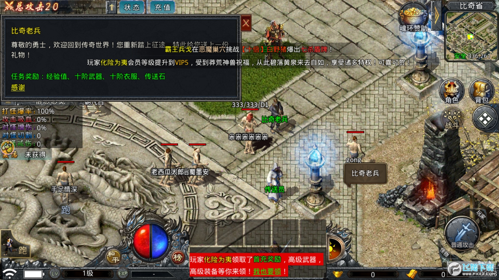 怪物刷新:所有地图都会刷新不同年份怪(红色),越后期此类怪数量越多,有几率爆出充值点!