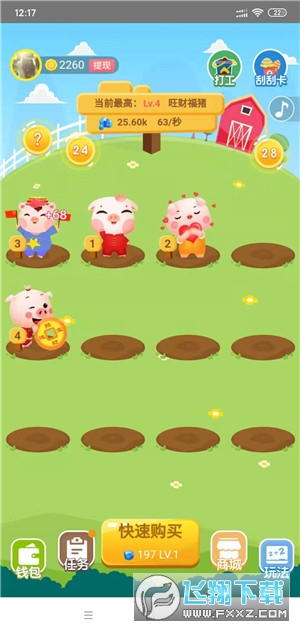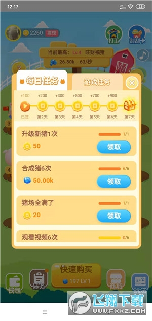 2、只要您每天登录游戏,就会有各种礼物包和道具,帮助猪快速成长;