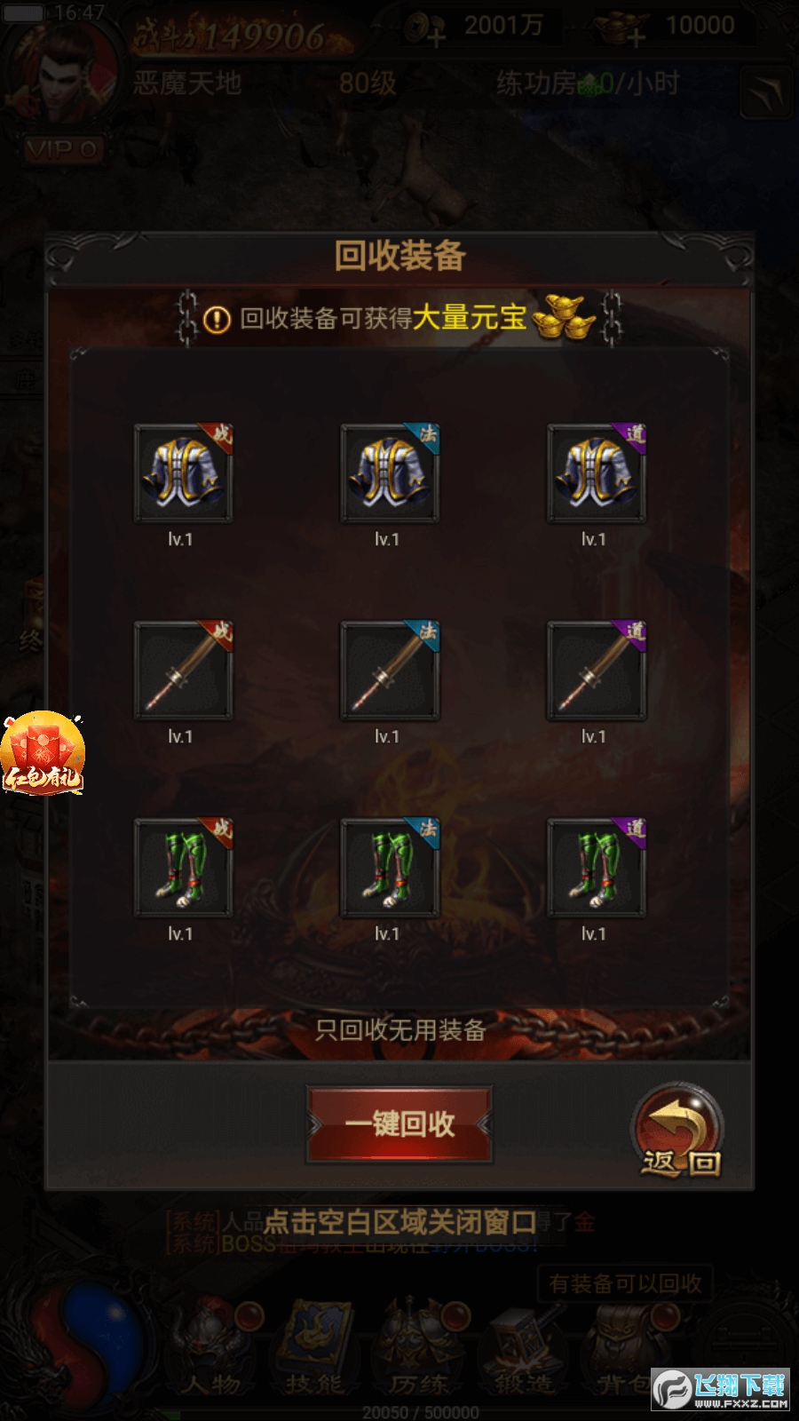 3、也能轻松战斗,自动打怪打boss,获取更多经验和神器。