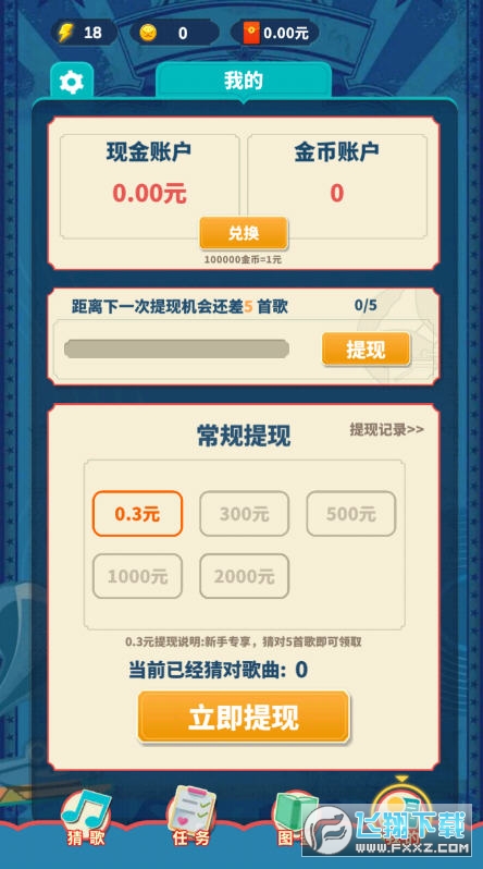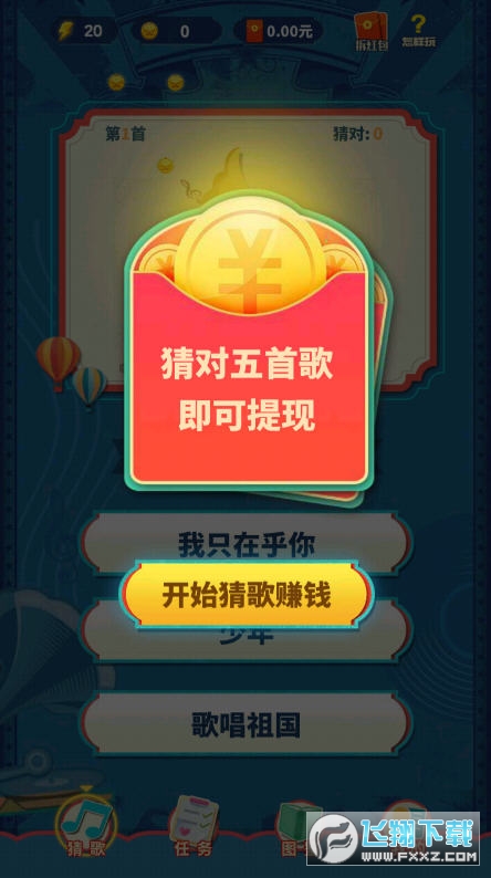 需要用户通过背景音乐来猜歌名,获得奖励可以直接提现。