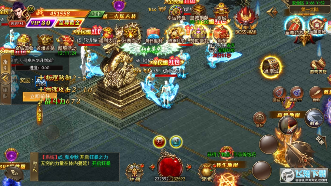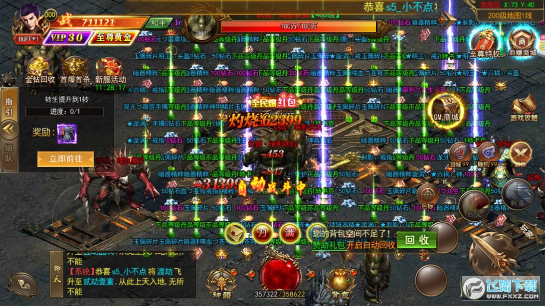 3、全民打金,真实充值免费拿,杀BOSS掉装备分真金,瓜分10万真实充值。