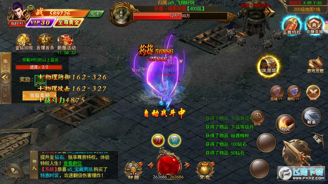 1、上线送GM专属战刀,无门槛装备,轻松砍翻所有BOSS。