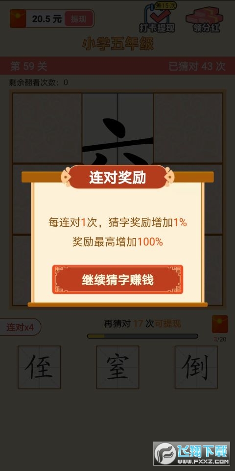 直接闯过5关猜字游戏,期间每通一关会要求看一个小视频,看小视频就能赚取平台分红。