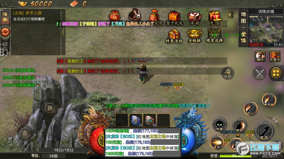 ★上线就送50000元宝,技能书,切割神器,更有其他福利等你领!(上线就有)