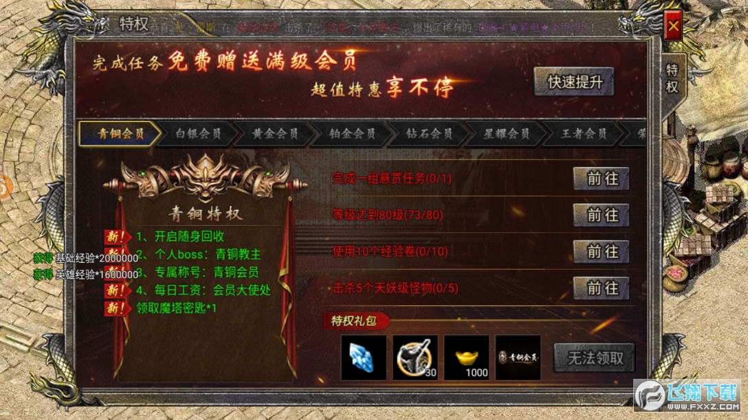 青铜会员:开启随身回收和个人boss青铜教主,会员工资每日领取魔塔密匙*1