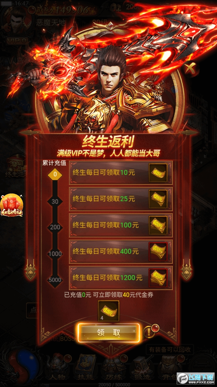 3、各种活动:包括开服活动,签到活动以及充值活动在内都会赠送大量超值的金币与装备与强化材料帮你提高战力,更强悍的战力意味着更快的杀怪效率,而且多余的钻石还可以买大量的经验药水。