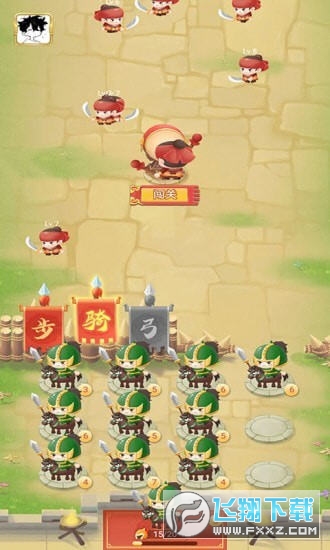3、采用Q版游戏画风,小小的三国英雄对决,放置士兵,排兵布阵取得胜利。