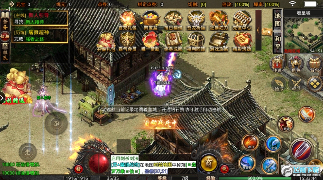 当完成上面所有的任务,还没有到下午两点的话,因为下午两点,双倍经验会开启,在之前就可以去激战BOSS杀BOSS在野外,各种高级装备可以轻松拿到,还可以进行回收.