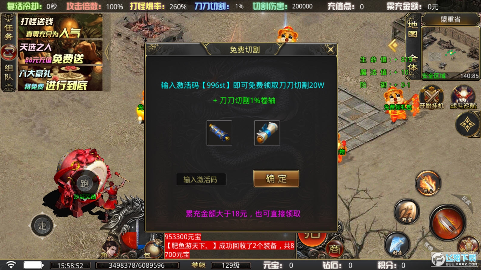 2、新增特色地图,适合散人打宝,组队混终极装备!散人不花钱一样混的好。