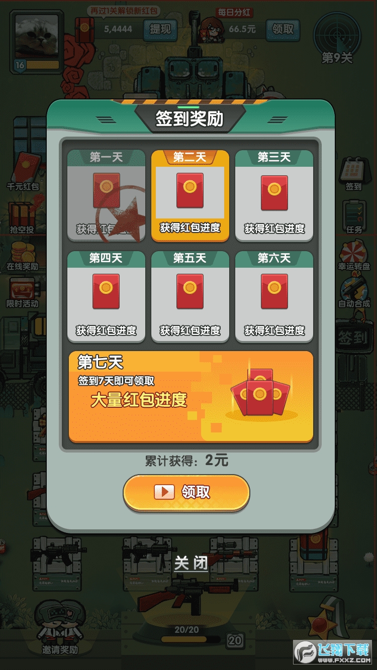 每天签到可以领取部分奖励,极其丰富的枪械武器装备,大量的关卡。