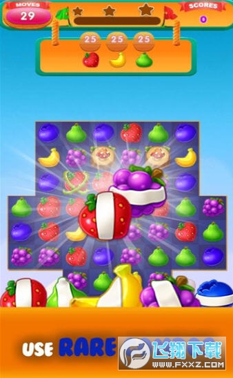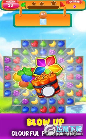 1、彩绘风格在其中描绘,里面各种的水果方块都可以让你去移动消除;