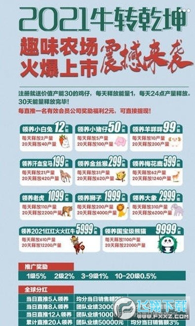 2021牛转乾坤趣味农场火爆上市,就送价值产能30的鸡仔,每天释放能量1,每天24点产量释放,30天能力释放完毕!牛转乾坤红包版中每直推一名有效会员公司奖励福利2元,在牛转乾坤游戏里的现金可直接提现。2元起提,支付宝到账,提现时间9点到凌晨1点!