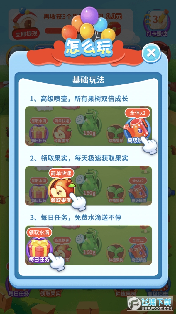 水滴,浇灌数目,产生苹果,兑换红包奖励。