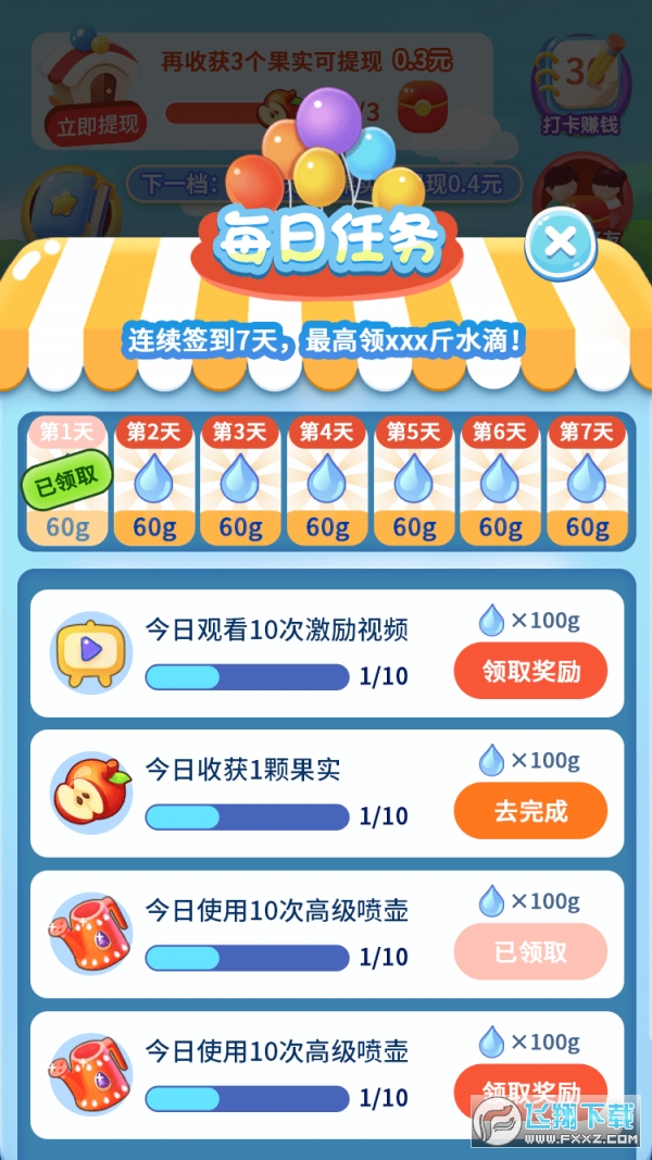 3.每日任务,免费水滴送不停