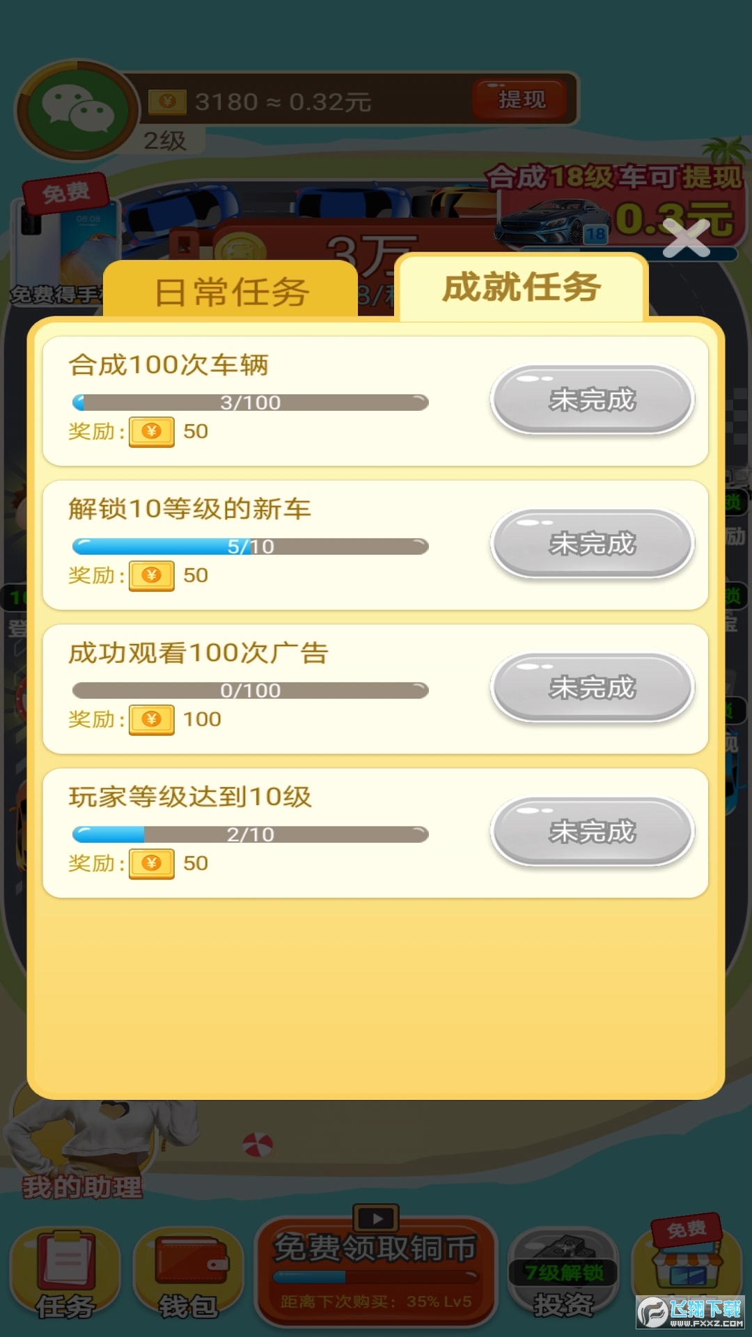 玩家大部分收益都是来自合成汽车,升级的同时也能获得游戏红包奖励。