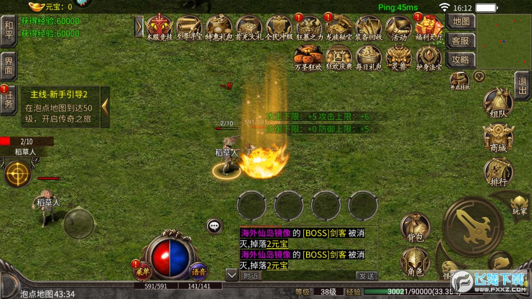 2、海量玩家激情沙巴克!跨服战,野外pk,行会拔旗等多种互动玩法,杀人爆装,自由交易,让你从此告别一个人战斗的寂寞!