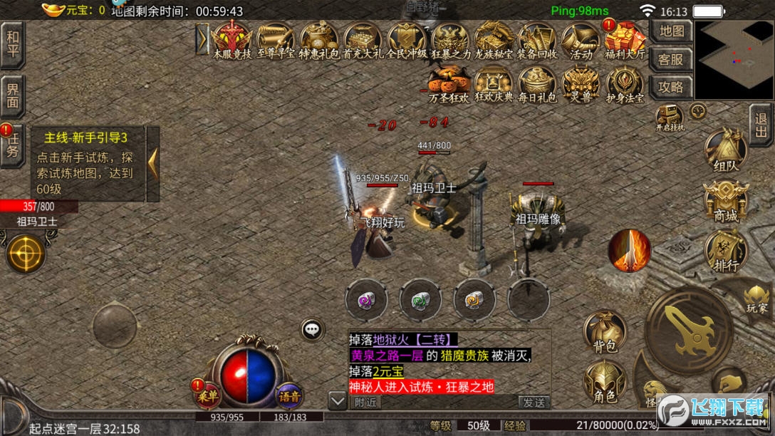 4、再现比奇城、封魔谷、沙巴克等经典场景,比回忆中的玛法大陆更为清晰生动,为玩家呈现更精致的视觉享受。