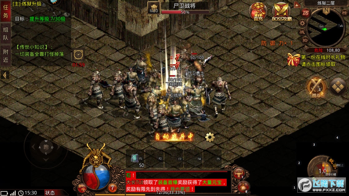 3、兄弟齐心磨BOSS,热血PK攻沙城。游戏保留了经典的“升级、爆装、攻沙”玩法,无论你是pvp或pve玩家,这个传奇绝对好玩!
