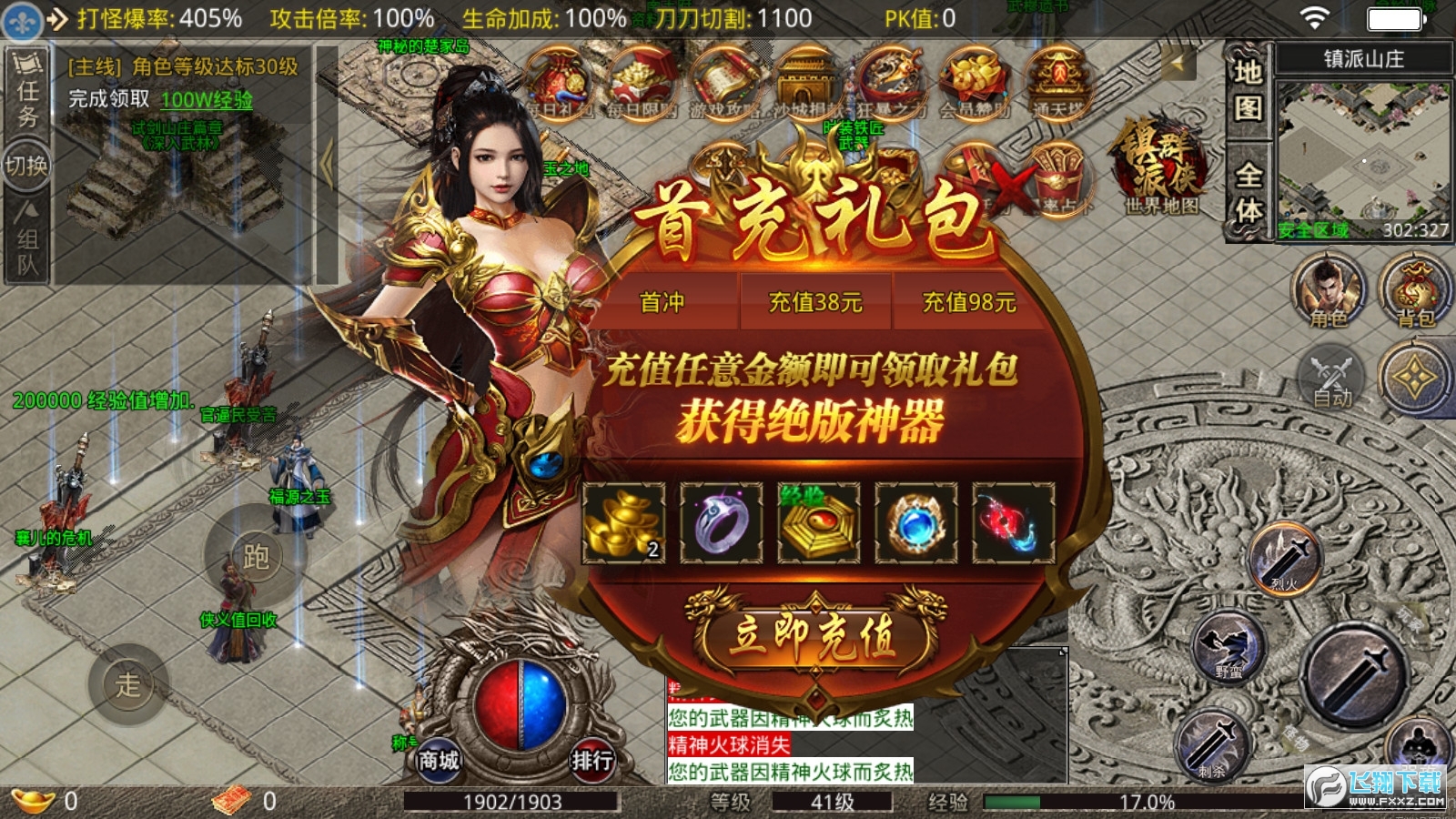 升级打怪,自由无限制!超高的离线经验,让您不再担心一天不玩的掉队!