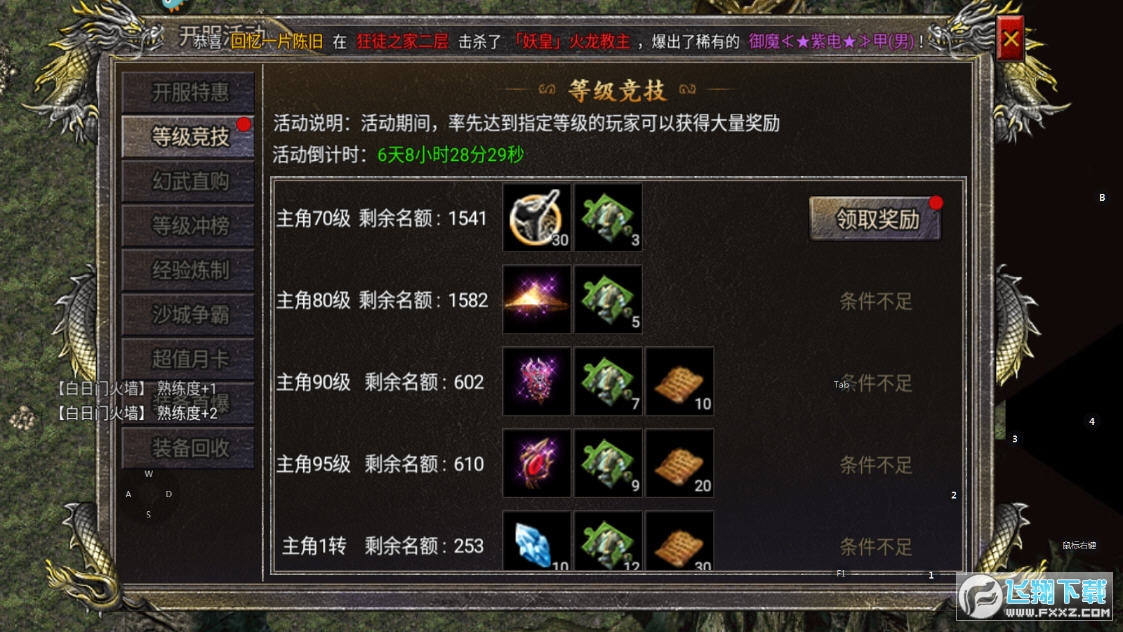 4、原始的怪物攻城、野外boss、杀人红名、首领玩法重现。